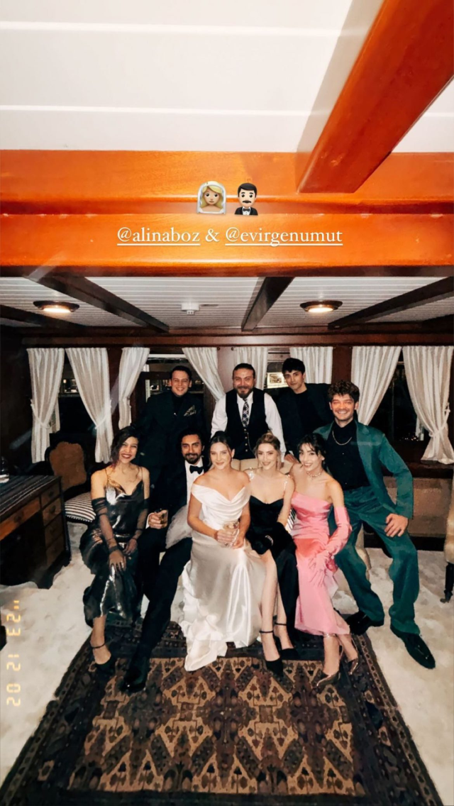 Genç çiftin nikahını Sarıyer Belediye Başkanı Şükrü Genç kıydı. Törende Boz'un şahitliğini Burak Can ve Cemre Beygüvey üstlenirken, Evirgen'in şahitleri de yakın dostu Özge Özpirinçci ve Fatih Terim oldu. Terim, nikah cüzdanını "Allah sizi bir yastıkta kocatsın" diyerek Alina Boz'a verdi.