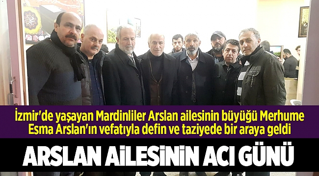 Arslan ailesini bu acı gününde Mardinli hemşerileriyle yakın dost ve akrabaları yalnız bırakmadı. Merhumenin Kaynaklar Mezarlığı'na defnedilmesi sonrası Karabağlar Limontepe Mahallesi'nde bulunan Ömerliler Taziye Evi'nde 3 gün boyunca taziyeleri kabul eden aileyi Mardinli hemşerileriyle yakın dost ve akrabaları yalnız bırakmayarak acılarını paylaştı.