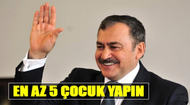 Aday memurlara 'erken yatıp, erken kalkma' tavsiyesinde bulunan Bakan Eroğlu, kendisinden önce konuşan Müsteşar Yardımcısı Çiftçi'nin 'erken evlenin' önerisini hatırlatarak, "Ben de hem erken evlenin hem de en az 5 çocuk yapın diyorum. Bunu da hedef olarak koyun" dedi.