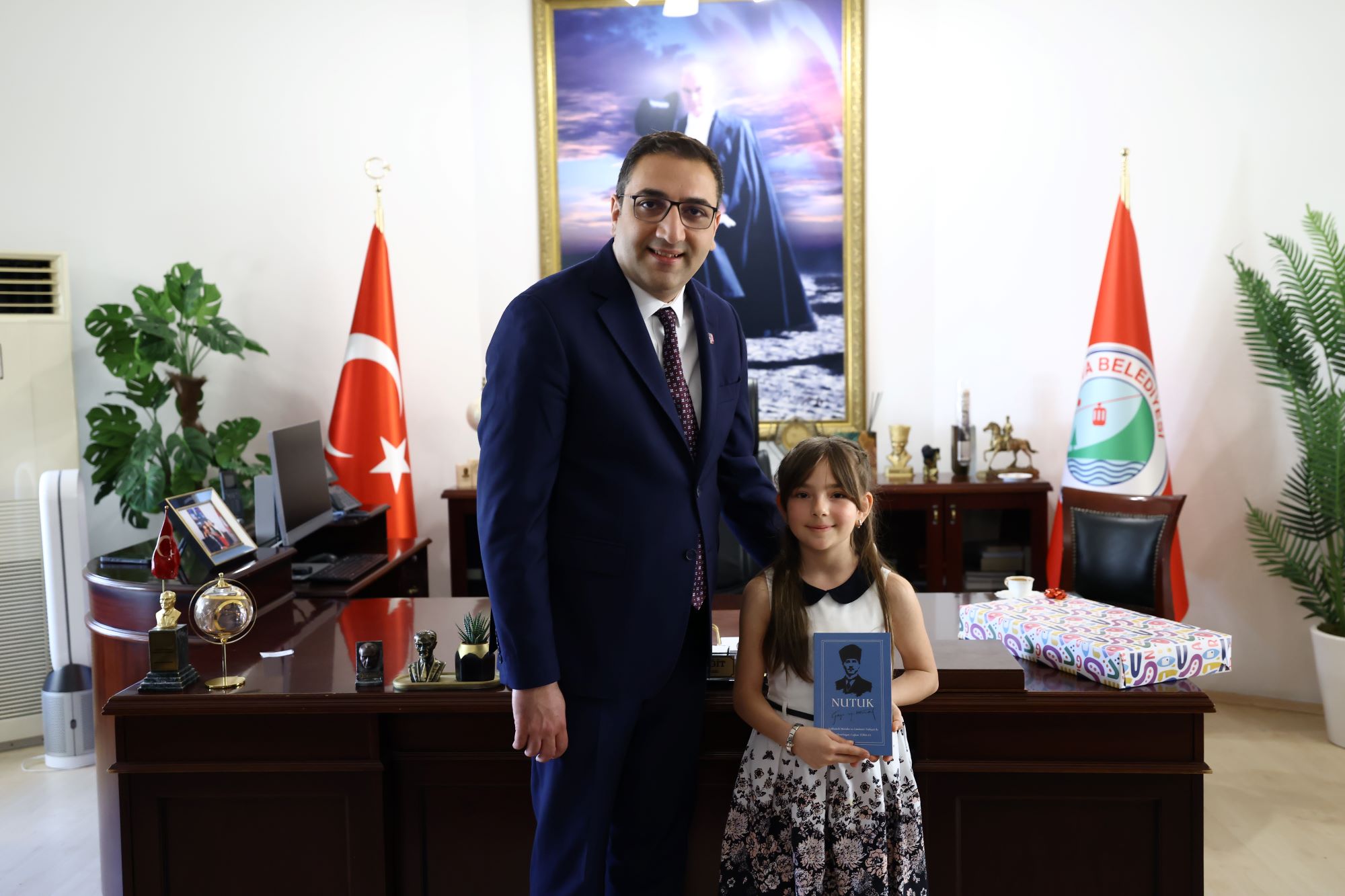 Başkan Yiğit, Aden’in projelerinden büyük memnuniyet duyduğunu, okul giriş ve çıkış saatlerinde trafiğin düzenlenmesi talebiyle ilgili İlçe Emniyet Müdürü ile görüşeceğini ifade etti. Başkan Yiğit, Bahçıvanoğlu’na ziyaretinin ardından Nutuk ve bir kitabevinde kullanabileceği hediye çeki armağan etti. Başkan Yiğit ayrıca Aden Mina Bahçıvanoğlu’na, Başkanlık yaptığı sürece masasında duran özel yaptırdığı isimliği de takdim etti. Temsili Başkana ziyaret sırasında sınıf Öğretmeni Gözde Taşer, Okul Müdürü Burçak Akseki, annesi Sema Bahçıvanoğlu, babası Göker Bahçıvanoğlu ve ablası Ahsen Alya Bahçıvanoğlu eşlik etti. Başkan Onur Yiğit, ziyaretin ardından temsili