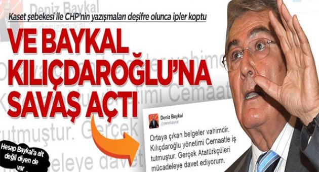 Emre Uslu, Kılıçdaroğlu'na 'Gerzek' deyip canıyla tehdit etmiş!Paralel ifşaatları ile çalkalanan CHP'de eski Genel Başkan Deniz Baykal akşam saatlerinde kritik açıklamalarda bulundu. Resmi Twitter adresi olduğu iddia edilen sayfası üzerinden isyan bayrağını açan Baykal ilk olarak, "Ulu Önder Atatürk'ün emaneti olan CHP, birilerinin kuklası olmuş. Yazıklar olsun." dedi.