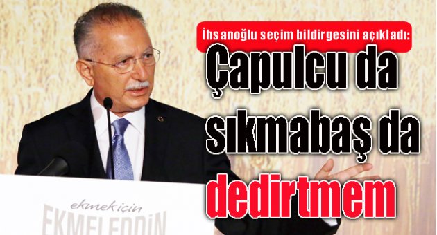 CHP ve MHP’nin Cumhurbaşkanı adayı Ekmeleddin İhsanoğlu, seçim bildirgesini açıkladı. “Hiçbir partiye diğer partilerden daha yakın veya uzak değilim” diyen İhsanoğlu, “Ben MHP, CHP dahil, AK Parti ve diğer partilerin seçmenlerinin, tüm Türkiye’nin cumhurbaşkanı adayıyım” dedi.