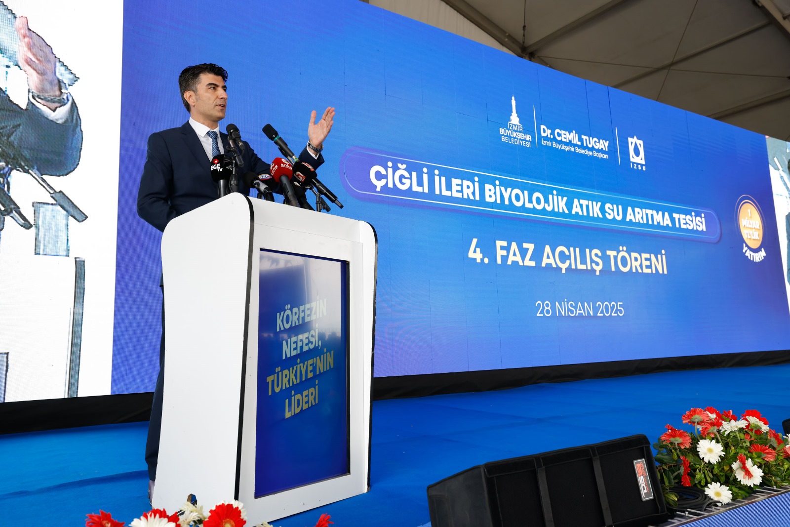 Çiğli Atıksu Arıtma Tesisi’nin 2000’li yılarda hizmete alındığını söyleyen İZSU Genel Müdürü Gürkan Erdoğan ise, “Aradan geçen 25 yıllık dönemde bir yandan tesis çalışırken diğer yandan da 4. fazın hayali kuruldu. Bugün, bu hayalin gerçekleşmesinin mutluluğunu yaşıyoruz. Biz, ülkemizin çok zor ekonomik zamanlardan geçtiği bir dönemde göreve geldik. Göreve gelir gelmez, İzmir Büyükşehir Belediye Başkanımız Sayın Cemil Tugay’ın talimatıyla sıkı bir mali politika uyguladık. Tasarruf önlemlerimizi artırdık, ödeme planımızı güncelledik, yatırımlarımızın öncelikli olanlarını planladık. Bir yıl gibi kısa bir sürede bu çalışma programımızın meyvelerini almaya başladık. Tesisimizi, öz kaynaklarımızla 1 milyar liralık yatırım ile hizmete aldık. Bu kapasite, Çiğli tesisimize alanında Türkiye’nin en büyük tesisi olma özelliğini kazandırıyor. 4. faz ünitemiz tek başına yaklaşık 1 milyon kişinin atık suyunu arıtma kapasitesine sahip bir tesis oldu. Sadece 4. faz bile Türkiye’nin birçok şehrindeki arıtma tesisinden daha büyük bir arıtma tesisi özelliğine sahip. Bu tesisimizin Körfez’in temizliğinde de çok büyük bir etkisi olacak” dedi.
