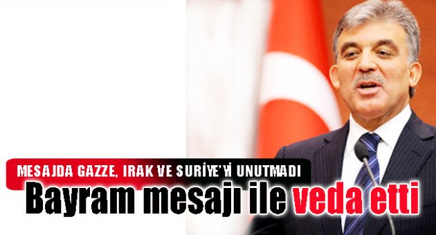 Cumhurbaşkanı Abdullah Gül, Ramazan Bayramı nedeniyle bir kutlama mesajı yayınladı. 28 Ağustos günü cumhurbaşkanlığı görevini tamamlayacağını belirten Gül, “Cumhurbaşkanlığı görevinden büyük bir huzurla ayrılacağım. Üstlenmiş bulunduğum bu onurlu görevin sorumluluğunu en iyi şekilde yerine getirmeye çalıştım” ifadelerini kullandı.