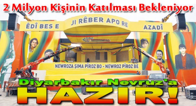 Çözüm sürecinde tarihi öneme sahip Diyarbakır’daki Nevruz kutlamalarına yönelik hazırlıklar tamamlandı, kutlamalara bugün 2 milyon insanın katılması hedefleniyor. Öcalan’ın sürecin geleceğine yönelik mektubunun okunacağı kutlamada verilecek mesajın ipuçları da ortaya çıktı. Öcalan’ın, silahlı mücadele ve silah bırakmaya yönelik irade beyanında bulunacağı öğrenildi. Öcalan’dan görüntülü ve sesli mesaj beklentisinin karşılanmaması ise hayal kırıklığı yarattı.