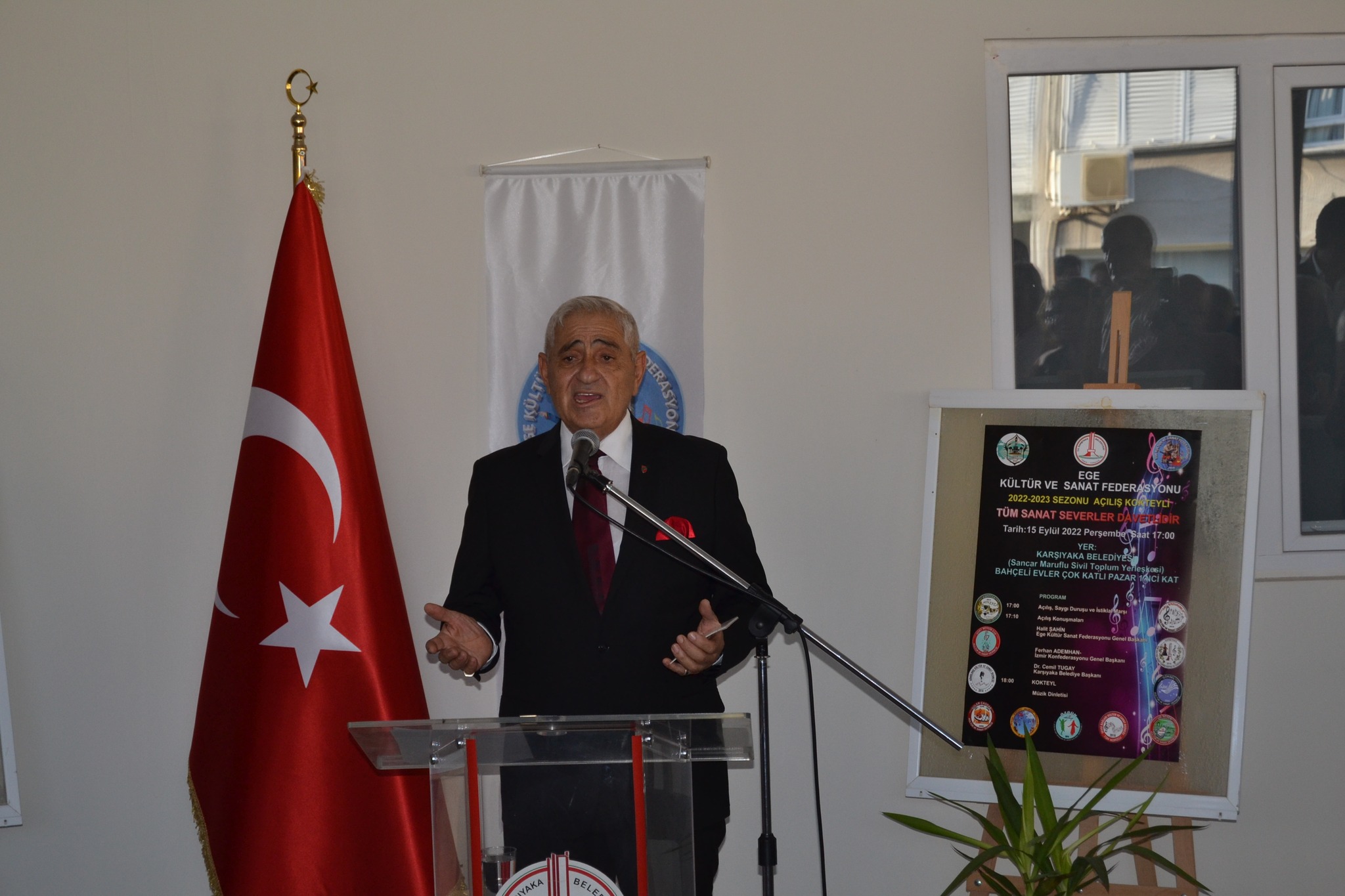 ‘İzmir Konfederasyonu’ Genel Başkanı Ferhan Ademhan ise Konfederasyona bağlı 80 federasyon içerisinde en nadide federasyon olarak ‘Ege Kültür Sanat Federasyonu’nu gördüğünü söyleyerek 2022-2023 sezonunda başarılar diledi.