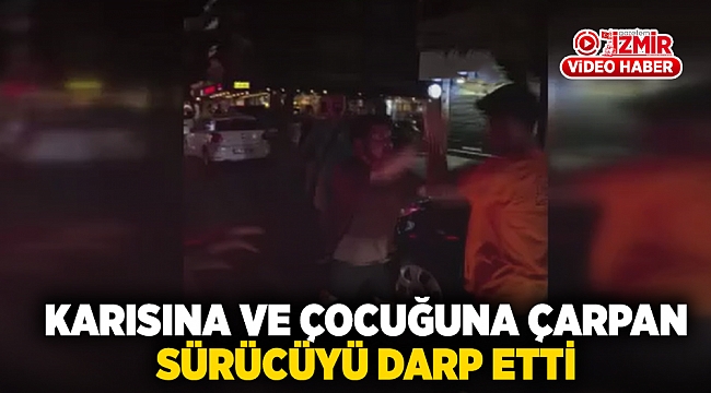 İzmir’in Buca ilçesinde motosikletli kurye, seyir halindeyken ailesiyle yolun karşısına geçmeye çalışan bir kadına çarptı. O sırada çocuğunu son anda kurtaran ve karısını yerde gören adam, öfkeyle kuryeye saldırarak tepki gösterdi. O anlar kask kamerasına yansıdı.