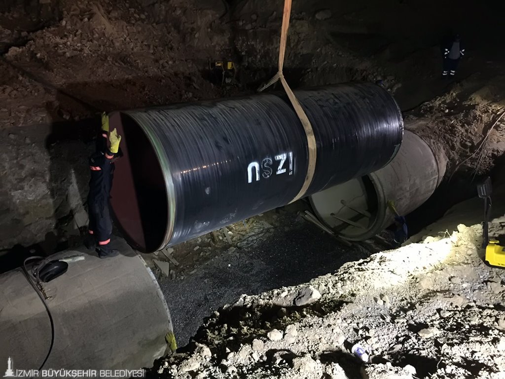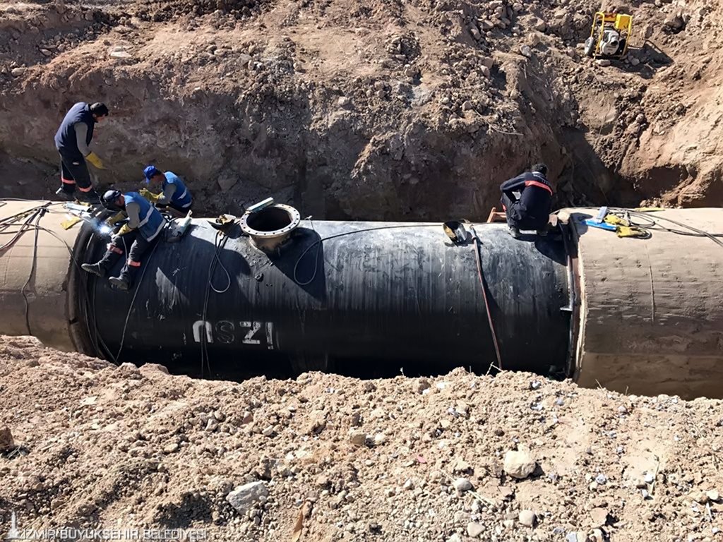 Menemen Turgut Özal Bulvarı üzerinde bulunan ve Göksu-Sarıkız kuyularından İzmir’in Bayraklı, Karşıyaka, Çiğli, Bornova ilçelerine su temin eden 2 metre 20 santim çapındaki ana boruda arıza tesbit eden İZSU ekipleri, sorunun büyümemesi için o bölgedeki beton borunun çıkarılıp yerine çelik boru montajı yapılacağını duyurdu.