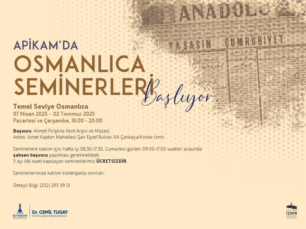 Mayıs ayında kentin farklı noktalarında seminer ve sergiler yer alacak. Gizem Güngördü Ercengiz küratörlüğünde Çağın İçinden Çizginin Dışından karma sergi, Kültürpark Atlas Pavyonu’nda 23 Nisan-15 Haziran tarihleri ve 10.00-17.00 saatleri arasında ziyaret edilebilecek. Ahmet Piriştina Kent Arşivi ve Müzesi (APİKAM) ise 7 Nisan-2 Temmuz tarihleri arasında “Osmanlıca Seminerleri”ni tekrar düzenleyecek. Küratörlüğünü Aybala Yentürk ve Nejat Yentürk’ün, proje koordinatörlüğünü ise İzmir Büyükşehir Belediyesi Kent Arşivi ve Müzeler Şube Müdürü Dr. Serhan Kemal Saygı’nın yaptığı YANIK YURT - Kurtuluş Savaşı’nda İzmir ve Batı Anadolu Yangınları sergisi ise APİKAM’da 20 Haziran’a kadar ziyaretçilerini ağırlamaya devam edecek.