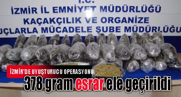 İzmir’in Buca ilçesinde düzenlenen operasyonda bin 378 gram esrar maddesi ele geçirildi.