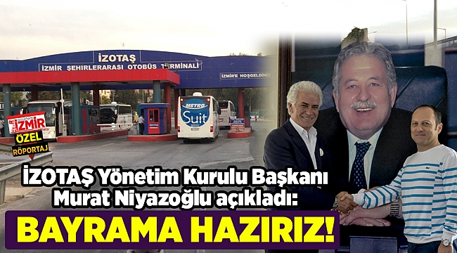 İzmir Otobüs ve Terminal İşletmeleri A.Ş. (İZOTAŞ) olarak biz vatandaşlarımızın yoğunluktan etkilenmemesi için başta güvenlik tedbirleri olmak üzere gerekli tüm önlemleri almış bulunmaktayız. Güvenlik birimlerimizin tüm ekipmanları gerekli kontrollerden geçirildi. Ayrıca ekstra güvenlik ve arama noktaları oluşturuldu. Yolcu ve yakınlarının can güvenliği konusunda tüm tedbirleri titizlikle ele almış durumdayız. Bayram süresince tüm birimlerimiz ile kaliteli hizmet anlayışımızdan ödün vermeden yolcularımızın taleplerini, şikayet ve isteklerini anında değerlendirme çabası içerisinde olacağız.