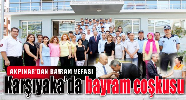 Bayram ziyaretlerini makamında kabul etmek yerine belediyenin tüm birimlerini ayrı ayrı gezen Karşıyaka Belediye Başkanı Hüseyin Mutlu Akpınar, personelle tek tek bayramlaştı. Ana hizmet binasının tüm katlarını dolaşan Akpınar, zabıta binası, Kent Konseyi ile Fen İşleri ve Temizlik İşleri şantiyelerini gezerek çalışanların bayramını kutladı. Belediye personeline çikolata ve baklava ikram edildi. Bayram için tüm taşeron işçilere erzak kutusu ve alışveriş çeki hediye edildi. Başkan Akpınar’ı sevgi gösterileri ile karşılayan çalışanlar, alkış ve tezahüratlarla uğurladı. Akpınar’a, başkan yardımcıları ve belediye bürokratları da eşlik etti.
