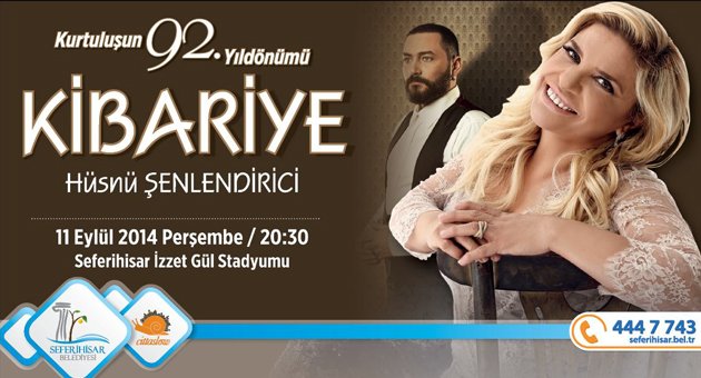 Seferihisar’ın düşman işgalinden kurtuluşunun 92.yılı olan 11 Eylül 2014 Perşembe akşamı, İzzet Gül Stadyumu’nda kutlama gecesi düzenleyecek. Saat 20.30’da başlayacak kutlama programında Türkiye’nin en güçlü seslerinden olan Kibariye’ye Hüsnü Şenlendirici ve 20 kişilik orkestra eşlik edecek.