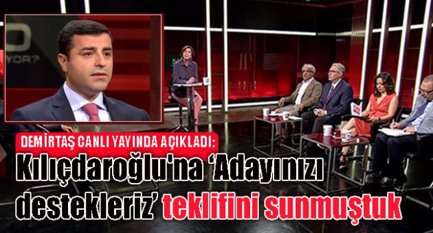 HDP'li Selahattin Demirtaş, CNNTürk'te Şirin Payzın'ın sunduğu "Ne Oluyor" programında, Kılıçdaroğlu'nun kendisini ziyaret ettiğini ve CHP Lideri'ne, "CHP olarak belirli ilkelere bağlı, bu ilkeleri koruyabilecek bir aday çıkarırsanız destekleriz. Açıktan destekleriz, kampanyasında çalışırız. Ardından söyledik, bundan sonraki yola MHP ile mi HDP ile mi devam edeceksiniz? Değişim ihtiyacını okuyoruz. Buyrun aday çıkarın." dediğini açıkladı.