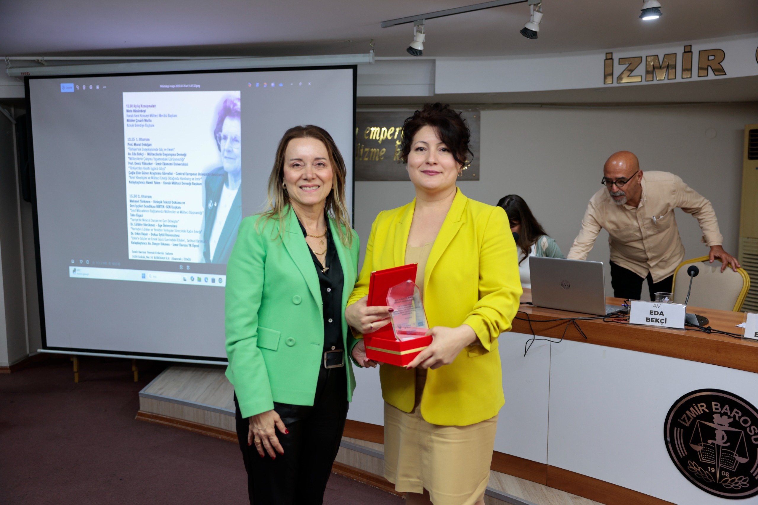 Konak Kent Konseyi Mülteci Meclisi Başkanı Mete Hüsünbeyi ise şunları söyledi: “Nermin Abadan Unat Hocamızın da altını çizdiği gibi Türkiye, dünyada sayısal olarak en çok mülteci bulundurmasına karşın, mültecilerin nüfusa oranı açısından Ürdün ve Lübnan’da daha fazla mülteci bulunmaktadır. İç savaştan bu yana 14 yıl geçti, mültecilerin önemli kısmı bugün üretimin içinde yer almaktadır. Ayakkabı, tekstil, mobilya gibi birçok sektörde nitelikli işgücü açığını kapatmaktadırlar. Mülteciler işsizliğin nedeni olmadığı gibi, üretken emeğin önemli unsurlarıdır. Sempozyumda göç ve çalışma yaşamını çok boyutlu olarak ele almak istedik. Her biri alanlarında yetkin olan çok değerli konuşmacılarımızın katılımları bizleri heyecanlandırdı. Her birine davetimize olumlu yanıt verip katıldıkları için ayrı ayrı teşekkür ediyorum.”