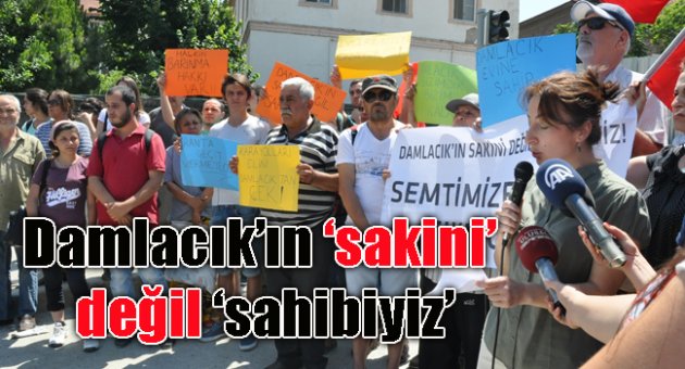 "Damlacık'ın sakini değil, sahibiyiz. Semtimize sahip çıkıyoruz" yazılı pankart açan mahalleliler, "ranta geçit vermeyeceğiz", "bu daha başlangıç mücadeleye devam" sloganları attı.
