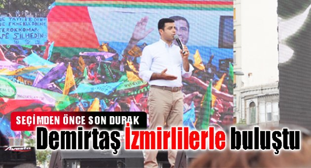 90 yılda hiçbir zaman halkın temsilcilerinin iktidara gelmediğini dile getiren Demirtaş, "Birbirimizi suçlayarak kardeşliği inşa edemeyiz. Ezilen bütün kimlik ve inançlarımızla renklerimizi yarın sandığa yansıtalım. İzmir halkı uzatılan bu barış ve kardeşlik elini tutmalıdır. Demokratik çözüm Kürtler ve AKP arasında değildir. Halklar arasındadır. Yeni anayasayı da ancak böyle yazabiliriz" dedi.