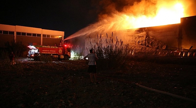 Manisa'nın Yunusemre ilçesi Evrenos Mahallesi, Orta Ölçekli Sanayi Bölgesi'nde faaliyet gösteren bir kauçuk fabrikasının malzeme depolama kısmında henüz belirlenemeyen nedenle yangın çıktı.