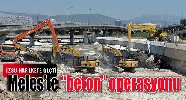 Özellikle yaz aylarında artan sıcaklıkların dere tabanında biriken malzemelerde koku yaratmaması için Meles Deresi'nin tabanındaki iyileştirme çalışmalarına devam eden İzmir Büyükşehir Belediyesi, bu kapsamda bir taraftan çamur ve balçıkların tahliyesini sürdürürken diğer taraftan da temizlenen bölümlerde beton atmaya başladı.