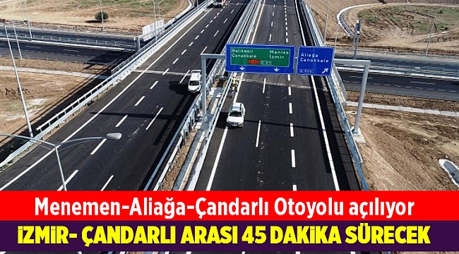 İzmir’de yapımı süren Menemen-Aliağa-Çandarlı Otoyolu ve bağlantı yollarının bazı kesimleri 30 Ekim’de trafiğe açılacak. Yap-işlet-devret modeliyle ihale edilen projenin tamamlanmasıyla İzmir Çevre Yolu Ege Üniversitesi Hastanesi kavşağından Çandarlı çıkışına kadar olan mesafe yaklaşık 40 dakikada geçilebilecek.