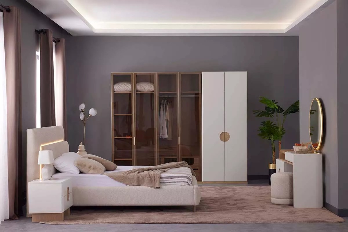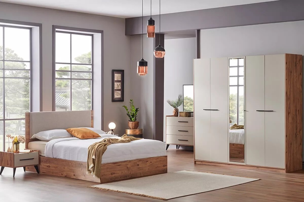 Yatak odası takımı ile uyum içinde seçilen bir gardırop, düzenli ve akıcı bir görünüm sağlar. Sürgülü dolap sistemleri, kullanım alanını artırarak yatak odalarında daha ferah bir ortam oluşmasına katkı sağlar.