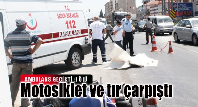 İzmir Karşıyaka-Çiğli güzergahında bugün öğle saatlerinde motosiklet ve tırın çarpışması sonucu bir kişi tırın altında kalarak hayatını kaybetti