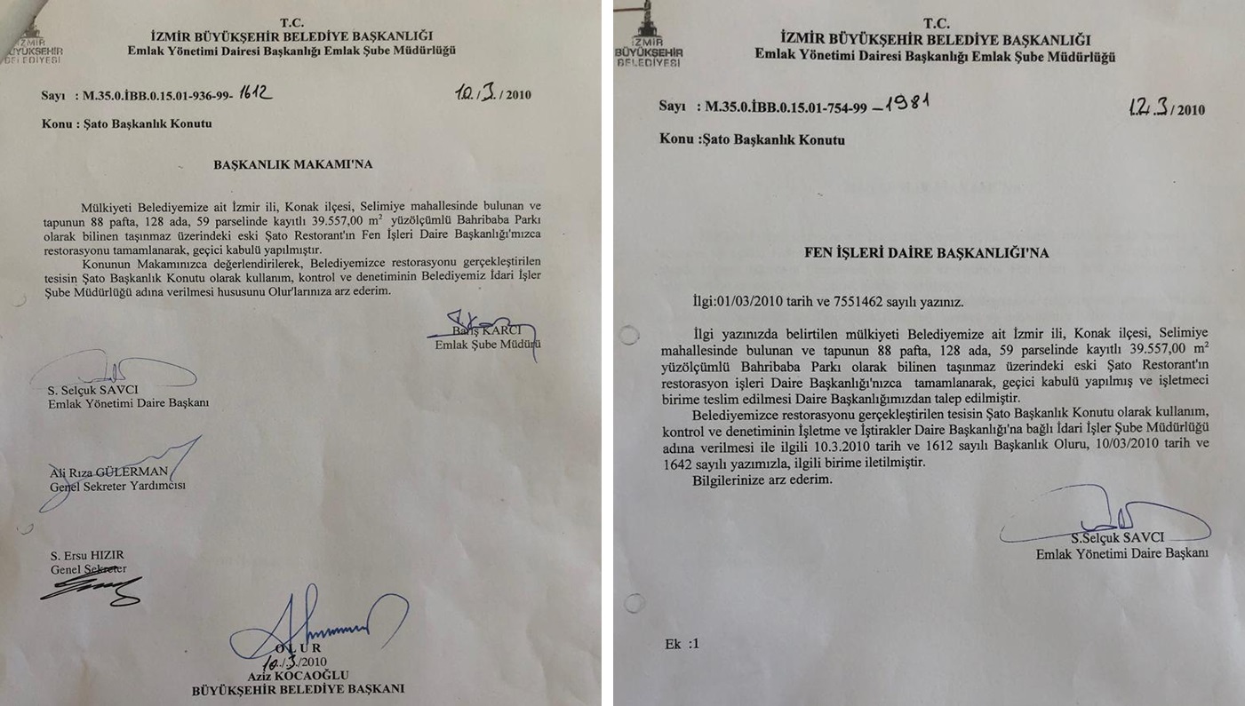 Soyer'in Başkanlık Konutu olarak kullanacağı konuk evinin, geçmişte uzun yıllar Şato Restoran olarak hizmet verdiği, 2010 yılında restore edildikten sonra dönemin Büyükşehir Belediye Başkanı Aziz Kocaoğlu’nun da imzasıyla ‘Başkanlık Konutu’ olarak kullanılması yönünde karar alındığı anlaşıldı. Bina o tarihten bu yana başkan danışmanları tarafından konaklama yeri olarak kullanılırken, ilgili kararla yerin, Başkanlık Konutu olarak kullanılması ve kontrol ile denetiminin belediye idari işler şube müdürlüğüne verildiği de öğrenildi.