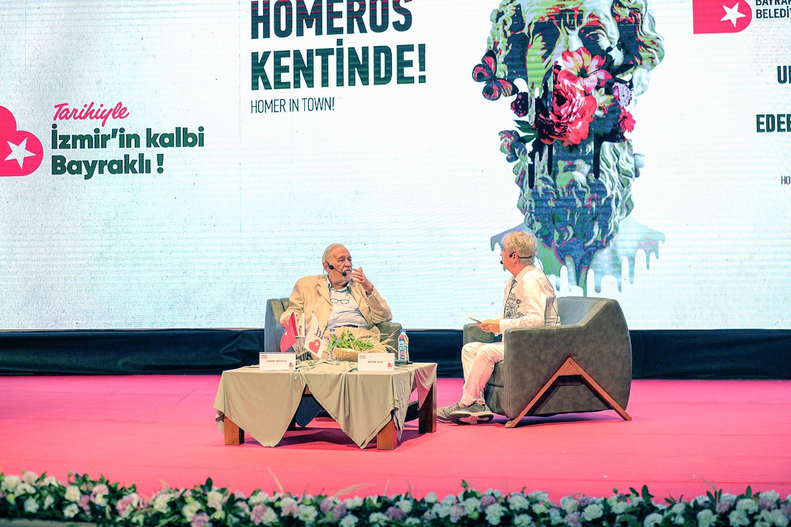 Günün en özel etkinliğinde ünlü Tarihçi-Yazar İlber Ortaylı ile sunucu Metin Uca Bayraklılılarla buluştu. Salon, merdiven boşlukları dahil hınca hınç dolarken ikili, geçmişten günümüze gelen halk ozanlarının ve Homeros’un tarihsel süreç içindeki yaşam serüveni ve hikayelerinin edebiyata, kitaplara yansımalarını anlattı. Seyirciler tarafından uzun süre ayakta alkışlanan Ortaylı, “Bayraklı Belediyesinin, ülkede onca dert varken Cumhuriyetin 100’üncü yılında Homeros Festivali gibi önemli bir konuya eğilmelerini çok anlamlı buluyorum. Başkan Sandal ve emeği geçenleri kutluyorum” dedi. Günün sonunda ise özgün müziğin önemli temsilcileri ‘Geniş Merdiven Grubu’ ve ‘Mikail Aslan’ Onur Açıkhava Tiyatrosu’nda yüzlerce Bayraklılıya unutulmaz bir gece yaşattı.