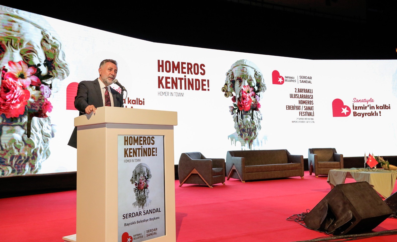 Bayraklı Belediye Başkanı Serdar Sandal, “Festivalimizle birlikte gördük ki; bizim Atatürk çizgisinden sapmayan sanatçılarımız, edebiyatçılarımız olduğu sürece kimse bileğimizi bükemez, kimse bizi istemediğimiz yerlere sürükleyemez. O nedenle sanata ve sanatçıya sahip çıkmaya devam edeceğiz. Uluslararası Homeros Edebiyat/Sanat Festivali bunun güvencesi olarak uzun yıllar devam edecek” dedi.