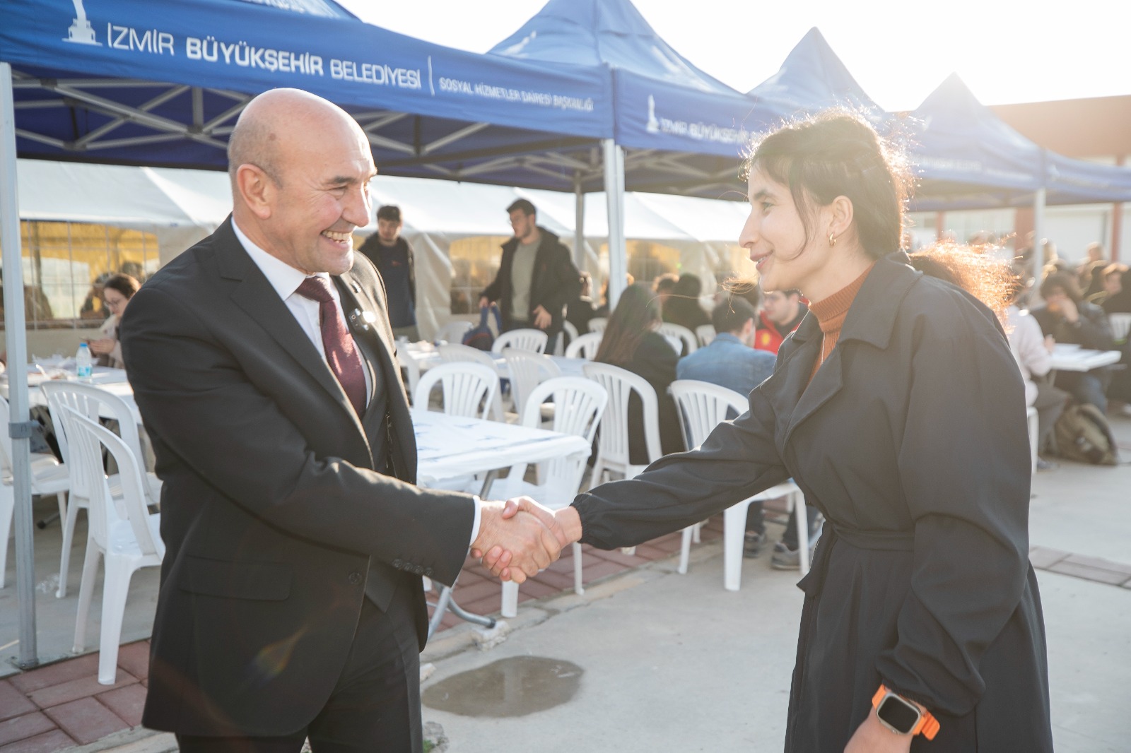 “Uygulamalar bize çok iyi geliyor”Öğrenci Zehra Çavaş ise “Başkanım şu an yemekle beraber bize çamaşırhane hizmeti veriyor. Bence bu uygulamalar çok iyi. Öğrenci olarak başka şehirlerden İzmir’e geliyoruz. Lezzetli yemekler veriliyor, bu sırayı beklemeye değiyor. Maddi olarak da bize destek oluyor. Çok memnunuz” diye konuştu.