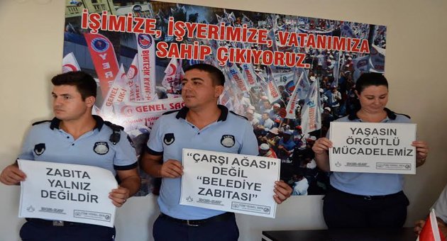 İki kurum adına basın açıklamasını yapan, Tüm Yerel-Sen İzmir 2 Nolu Şube Başkanı Tamer Yiğit GÜLER konuşmasında “Karşıyaka İlçemizde, Karşıyaka ve Bostanlı iskeleleri arasındaki işportacılara karşı çalışma yürüten Karşıyaka Belediyesi Zabıta ekipleri, tezgahlarına el koyulan seyyar satıcılar tarafından saldırıya uğradı.