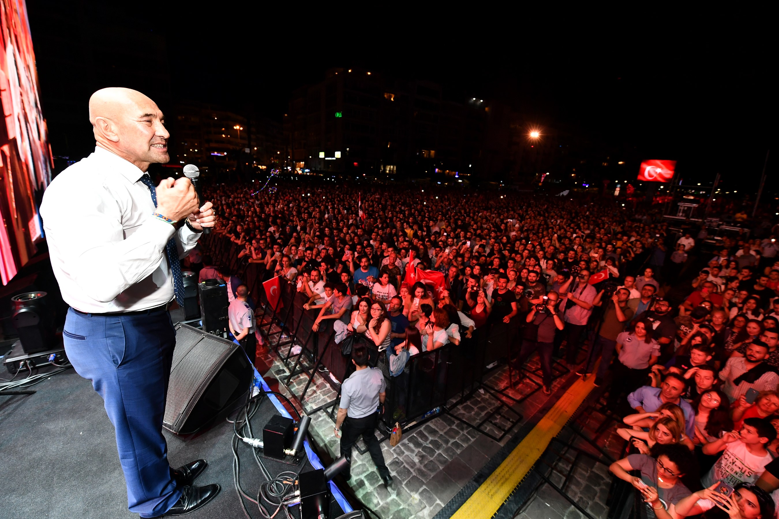 Gündoğdu Meydanı’nda on binlerce kişiye seslenen Büyükşehir Belediye Başkanı Soyer, “İzmir’den başlayarak Türkiye değişecek. İyi ki İzmirliyim, iyi ki İzmirlisiniz, iyi ki İzmirliyiz” diye konuştu. 19 Mayıs Atatürk'ü Anma, Gençlik ve Spor Bayramı kutlamalarının en coşkulu kutlandığı kentlerin başında yine İzmir vardı. Büyükşehir Belediyesi'nin düzenlediği tören ve etkinliklere İzmirliler büyük ilgi gösterdi. Gündoğdu Meydanı'nda Ceylan Ertem ve Hayko Cepkin'in sahne aldığı 19 Mayıs konserini ise on binlerce kişi izledi. 350 metrelik dev Atatürk posteri ve fener alayı eşliğinde Cumhuriyet Meydanı’ndan Gündoğdu Meydanı’na kadar yürüyen İzmir Büyükşehir Belediye Başkanı Tunç Soyer, alanı dolduranların büyük sevgi gösterileriyle karşılandı.