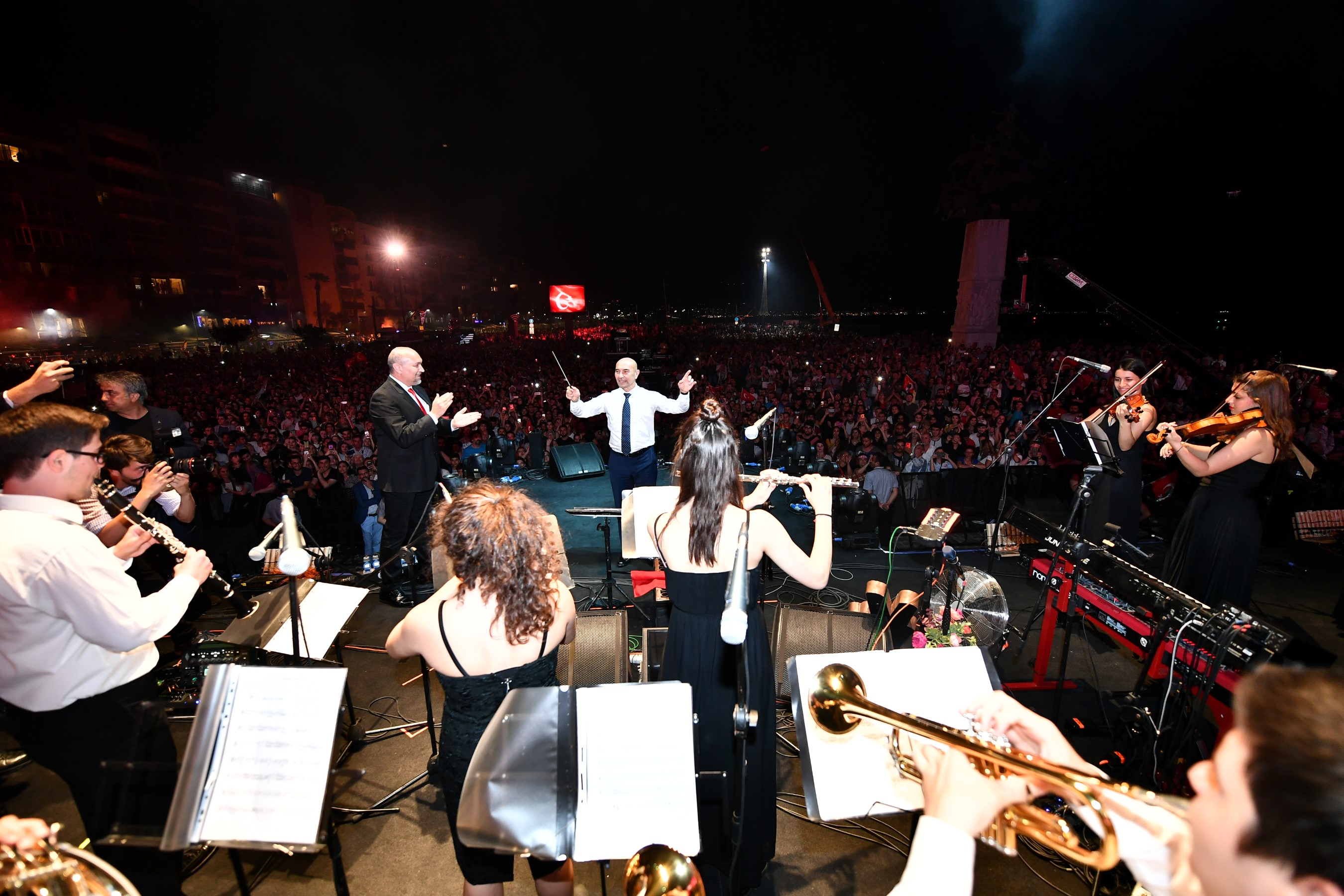 Burada yaptığı konuşmada tarihte emperyalizme karşı kazanılmış en büyük savaşın ilk kurşununun İzmir’de atıldığını söyleyen Başkan Soyer, şunları kaydetti: “Cumhuriyet’in temelleri burada atıldı. 100 yıl önce olduğu gibi şimdi yeniden Cumhuriyet ve demokrasiyi inşa etmek zorundayız. Bunu İzmir’den başlayarak yapacağız. İzmir’den başlayarak Türkiye değişecek. Yeni yüzyıl Cumhuriyet’in erdemlerini, değerini Türkiye ve dünyaya çok daha iyi anlatacağımız bir yüzyıl olacak. Bu da en çok İzmir’e, İzmirlilere yakışır. İyi ki İzmirliyim, iyi ki İzmirlisiniz, iyi ki İzmirliyiz.” Başkan Tunç Soyer, gecenin açılış konserinde sahne alan Gençlik Orkestrası’na da sembolik olarak şeflik yaptı.