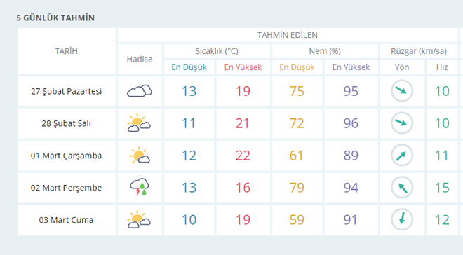 Bulutların gölgesinde başlayan haftada en yüksek sıcaklıklar 22 dereceye kadar çıkacak. 5 günlük periyotta sadece Perşembe günü sağanak yağış bekleniyor.