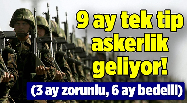 Milli Savunma Bakanı Hulusi Akar'ın dün yaptığı açıklamaya göre herkes için tek tip askerlik geliyor. Milli Savunma Bakanlığı’nın üzerinde çalıştığı taslağa göre, herkes 9 aylık tek tip askerlik yapacak. Bunun 3 ayı temel askerlik süresi ve zorunlu olacak. Kalan 6 ay için bedel ödenebilecek.