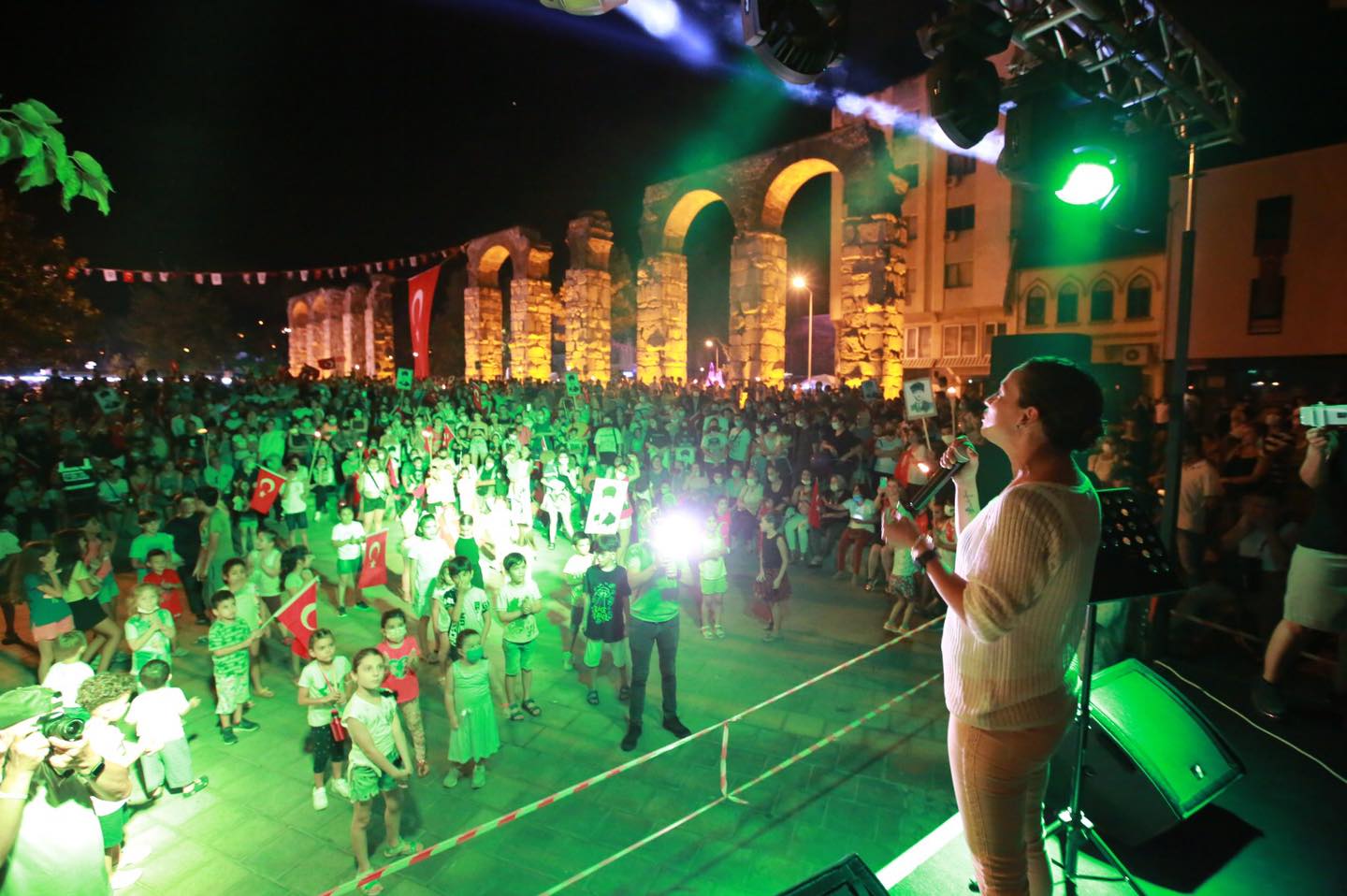 İstasyon Meydanı’nda son bulan Fener Alayı’nın ardından Grup Sam Efes Selçuklular ile buluştu. Konser öncesinde sahneye çıkan Efes Selçuk Belediye Başkanı Filiz Ceritoğlu Sengel; “Yarınların Cumhuriyet ile olacağına inanan Efes Selçukluları görüyorum bu akşam. Hepinizin ayağına sağlık. Nasıl güzel görünüyorsunuz bir bilseniz. Çocuklarınızı da alıp gelmişsiniz. En önlerdeydi çocuklar. Bu ne demek biliyor musunuz? Gelecekte umut var demek. Atatürkçü gelecek asla engellenemez demek. O çocukları yetiştiren ailelere kurban oluruz. 99 yıl önce tek ve yegâne başkomutanımız Gazi Mustafa Kemal Atatürk ve silah arkadaşları bir meşale yaktılar. Bu Cumhuriyet meşalesiydi, bağımsızlık meşalesiydi, özgürlük meşalesiydi. İşte o çocuklar Cumhuriyet meşalesini, bağımsızlık meşalesini, özgürlük meşalesini sonsuza kadar taşıyacak olanlardır. Efes Selçuklular, sizler Cumhuriyet hep sahip çıktınız, Atatürk ilke ve devrimlerine hep sahip çıktınız. Bundan sonra da bağımsızlık mücadelesi noktasında “Egemenlik kayıtsız, şartsız milletindir” sözü üzerine hep birlikte yol almaya devam edeceğiz. Sizlerle birlikte geleceğin en güzel yarınlarına kavuşacağız. Eminim ki; bu Cumhuriyet meşalesi sonsuza kadar yanacak. 30 Ağustos Zafer Bayramımız kutlu olsun” dedi. Başkan Sengel’in konuşmasının ardından Grup Sam sevilen şarkılardan oluşan repertuvarıyla Efes Selçuklular’a keyifli dakikalar yaşattı.