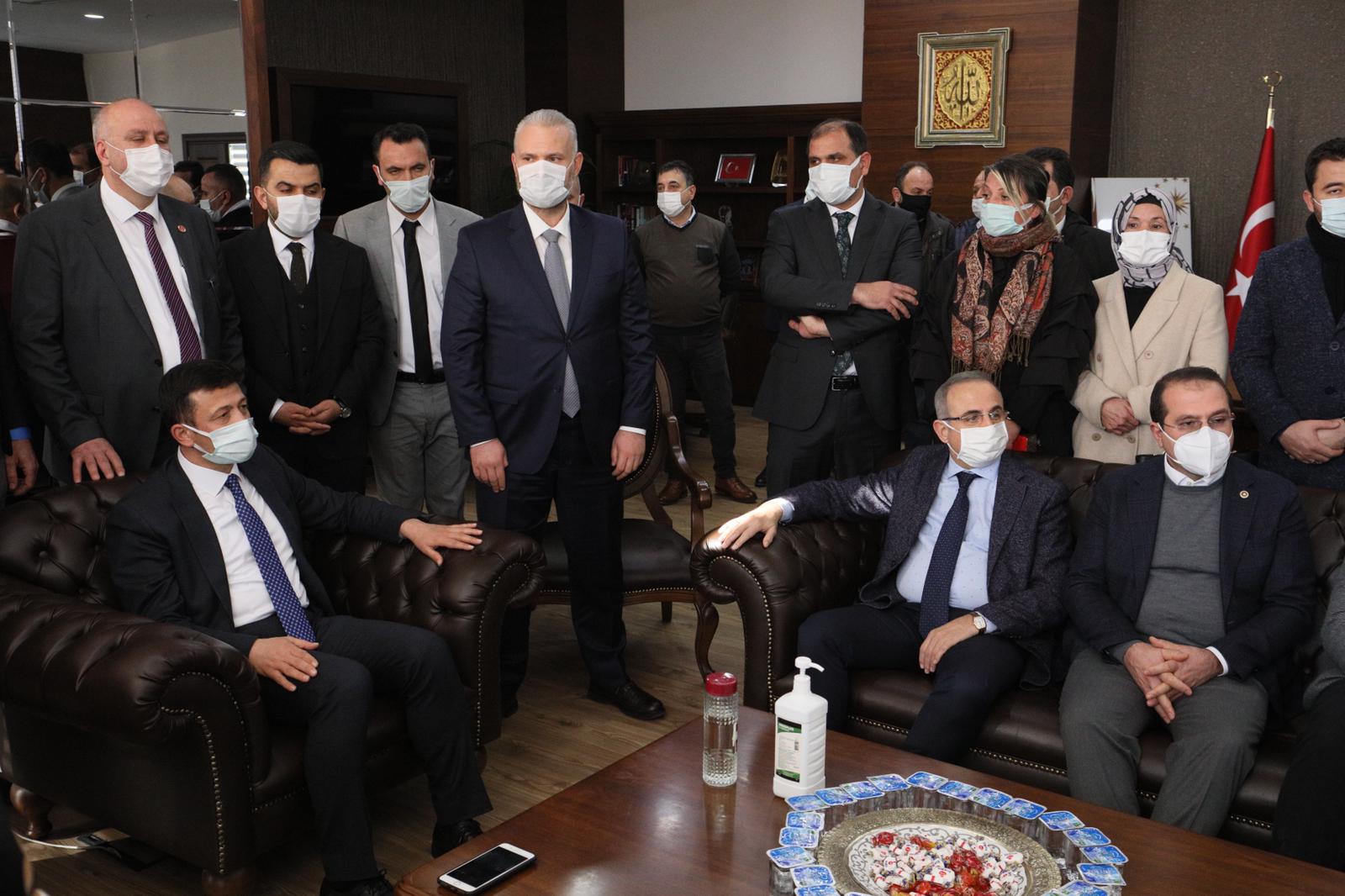 Menemen Belediye Başkan Vekili olduktan sonra tebrikleri ve başarı dileklerini kabul eden Aydın Pehlivan’ın bugün de Ankara’dan ziyaretçileri vardı. AK Parti Genel Başkan Yardımcısı, AR-GE Başkanı ve İzmir Milletvekili Hamza Dağ, AK Parti İzmir İl Başkanı Kerem Ali Sürekli, AK Parti İzmir Milletvekilleri Ceyda Bölünmez Çankırı, Yaşar Kırkpınar, Cemal Bekle, AK Parti İzmir İl Gençlik Kolları Başkanı Eyüp Kadir İnan ve AK Parti Menemen İlçe Başkanı Ahmet Can Çelik’i makamında ağırlayan Aydın Pehlivan konuklarına nazik ziyaretlerinden dolayı teşekkür etti.