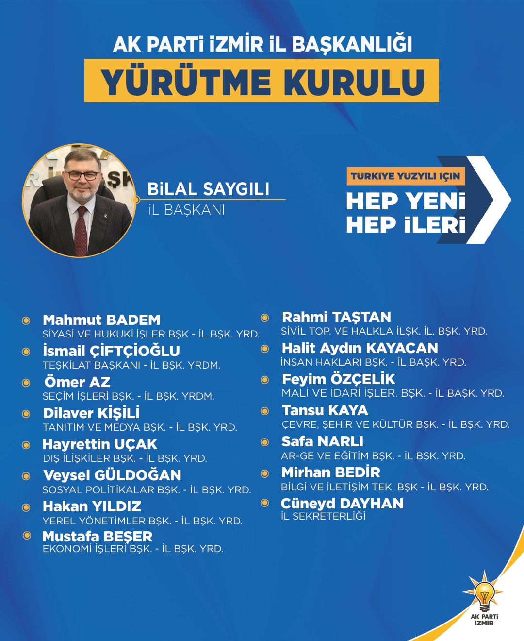 İl Yürütme kurulu şu şekilde oluştu: