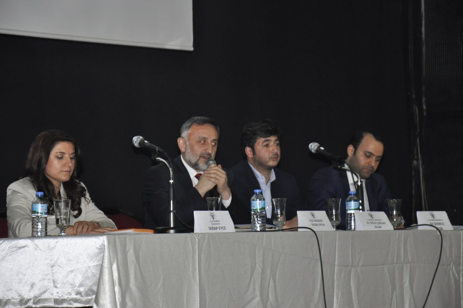 Panelin moderatörlüğünü AK Parti Karabağlar İlçe Başkanı Kazım Erten yaptı. Panele, AK Parti İzmir İl Başkan Yardımcısı Oğuz Çağlar Aslan, AK Parti Karabağlar İlçe Başkan Yardımcıları Serap Eyce ve Şehmus Bedir konuşmacı olarak katıldı. Erten, Cumhurbaşkanlığı Hükümet Sistemi’nin hiçbir yerden alıntı yapılmamış ve tamamen Türk tipi bir sistem olduğunu ve rejim değişikliğiyle de hiç ilgisi olmadığının altını çizerek, “Bu değişik yasama, yürütme, yargı ve denetleme kurumlarını kuvvetler birliğine dönüştürüyor. Kuvvet dengesini kuruyoruz. Bu konuda değerli konuşmacılarımız süreç içerisinde bu çalışmalarımıza yapılan eleştirileri cevaplayacaklar. İzmir’de siyaset yapıyor ve İzmir’den konuşuyoruz, her defasında milliyetçi muhafazakâr kesimin yanında demokrasi laiklik ve Cumhuriyet ile Atatürk ile ilgili kurulan eleştirilerle ilgili olarak da bu salonda ilahiyatçı bir siyasetçi olarak kısa bir değerlendirme yapmak istiyorum. AK Parti’nin Atatürk ile sorunu var diyorlar. Başbakan olduğu günden bu güne kadar Sayın Cumhurbaşkanımız her konuşmasında bir şeye vurgu yapıyor. Muhasır medeniyetlerin fevkine çıkmamız gerekir diyor. Yani çağdaş uygarlığın üzerine çıkmamız gerekir diyor. Bu cümle Sayın Cumhurbaşkanımız veya Başbakanımızın cümlesi değil. Bu Gazi Mustafa Kemal Atatürk’ün 110. Yıl Nutkunda geçiyor. Her konuşmalarında çağdaş uygarlığın üzerine çıkacağız diyen bir siyasi hareketin Gazi Mustafa Kemal Atatürk ve Cumhuriyet ile demokrasiyle laiklikle sorunlu gösterme oyununa düşmeyeceğiz. Her defasında bu demokrasi, laiklik, Cumhuriyet, milli irade ve Atatürk ile ilgili konuşmalar yapmak istemiyorum. Artık bunları geçmiş olmamız lazım. Son olarak bir benzetme yapmak istiyorum. İyi bir sürüş pilotu olabilirsiniz ama mutlaka iyi biri araçta olması lazım. Buda yetmez iyi bir yolda lazım. AK Parti ve MHP’nin sunduğu 18 maddelik anayasa paketi değişikliği sadece iyi bir sürüş pilotu ve iyi bir araç olsun demeyen aynı zamanda yol koşulları da iyi olsun diyen bir sistem önerisidir. Yetenekli güçlü ve pilot, nitelikli bir araç yani hükümet, ve istikameti yani kilometre taşlarını yasamayla, hukukla bir yol yöntem olacaktır” dedi.