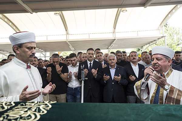 Cenaze töreni öncesi konuşan Başbakan Yıldırım, "Malum, İzmir milletvekilimiz Alpay Özalan'ın babası Mustafa Özalan, rahmete kavuştu. Ailesine başsağlığı diliyorum. Allah mekanını cennet eylesin. Bugün cenaze töreninde bulunmak için geldim. Buradan da Ankara'ya gideceğim. Cumhurbaşkanımız, Devlet Bahçeli ile görüşecek. Görüşmede ben de bulunacağım. Önümüzdeki süreci değerlendireceğiz" dedi.