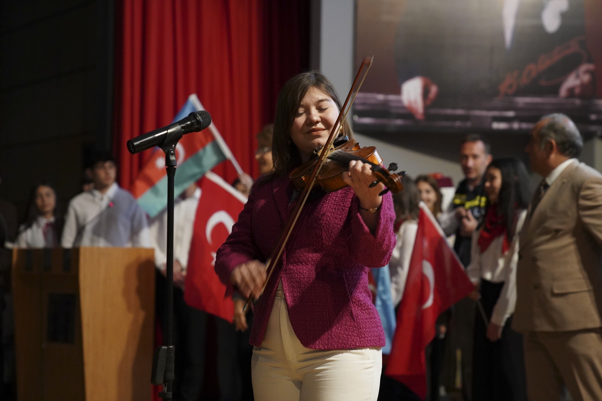 Okul içerisinde Heydar Aliyev’in hayatını konu alan resimler sergilendi. Türkiye ve Azerbaycan milli marşlarının okunmasıyla başlayan programda şiir ve kompozisyon dallarında dereceye giren öğrencilere ödülleri takdim edildi.