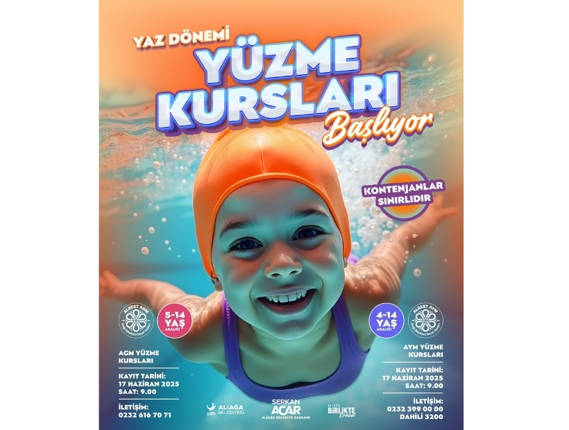 Kontenjanla sınırlı olan yüzme kurslarına katılım için yaş grupları ise merkezlere göre farklılık gösteriyor. AGM’de düzenlenecek kurslara 5–14 yaş aralığındaki çocuklar başvurabilecek. Detaylı bilgi almak isteyen vatandaşlar, Aliağa Gençlik Merkezi’ne 0 (232) 616 70 71 numaralı telefondan ulaşabilirler.