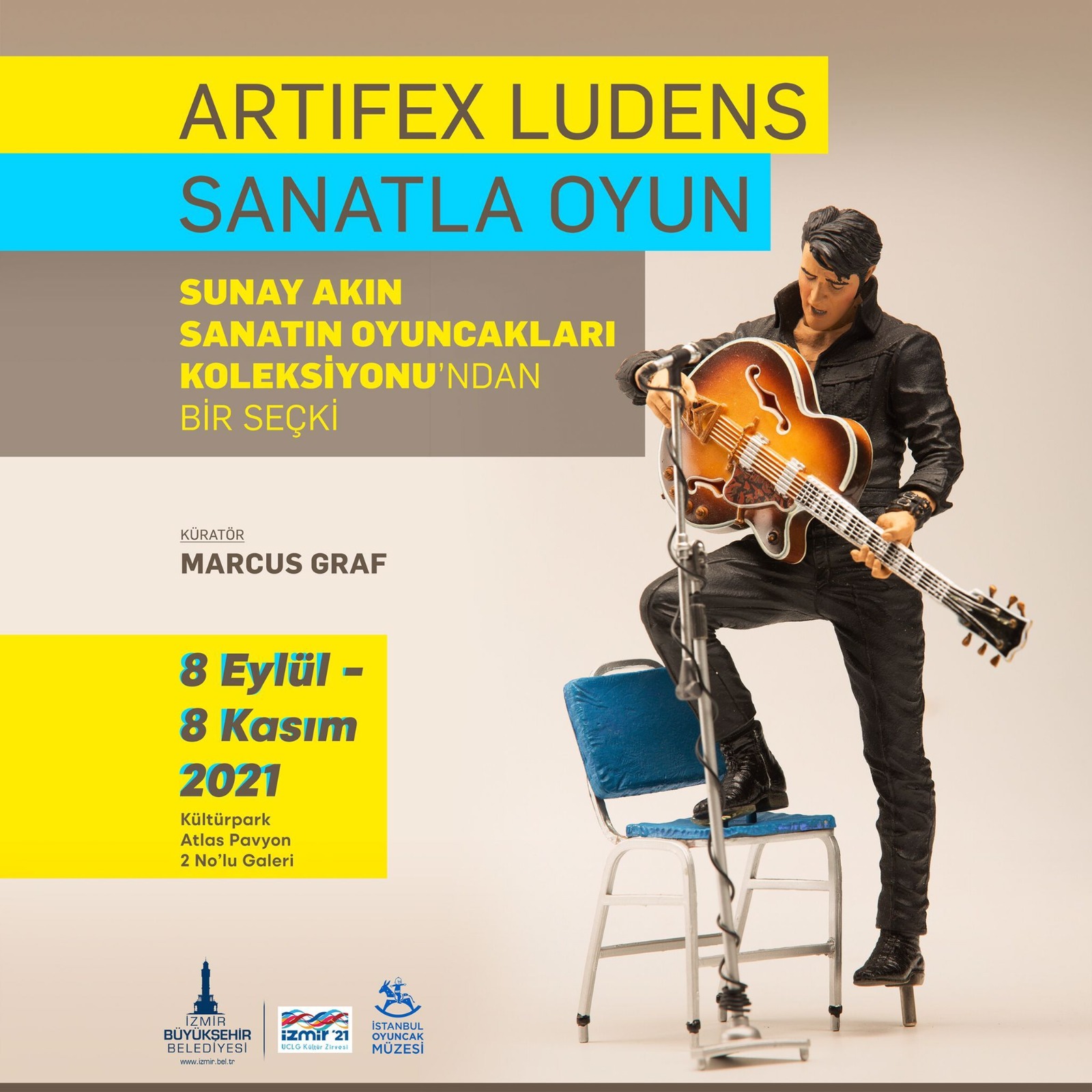 Küratörlüğünü Marcus Graf’ın yaptığı Artifex Ludens – Sanatla Oyun sergisinde izleyici, kolektif kültürün ve hafızanın önemli dayanaklarını keşfetme şansını yakalıyor. 8 Kasım 2021 tarihine kadar Kültürpark Atlas Pavyonu’nda açık kalacak sergi, hafta içi 11.00 –20.30 saatleri arasında ziyaret edilebilecek.