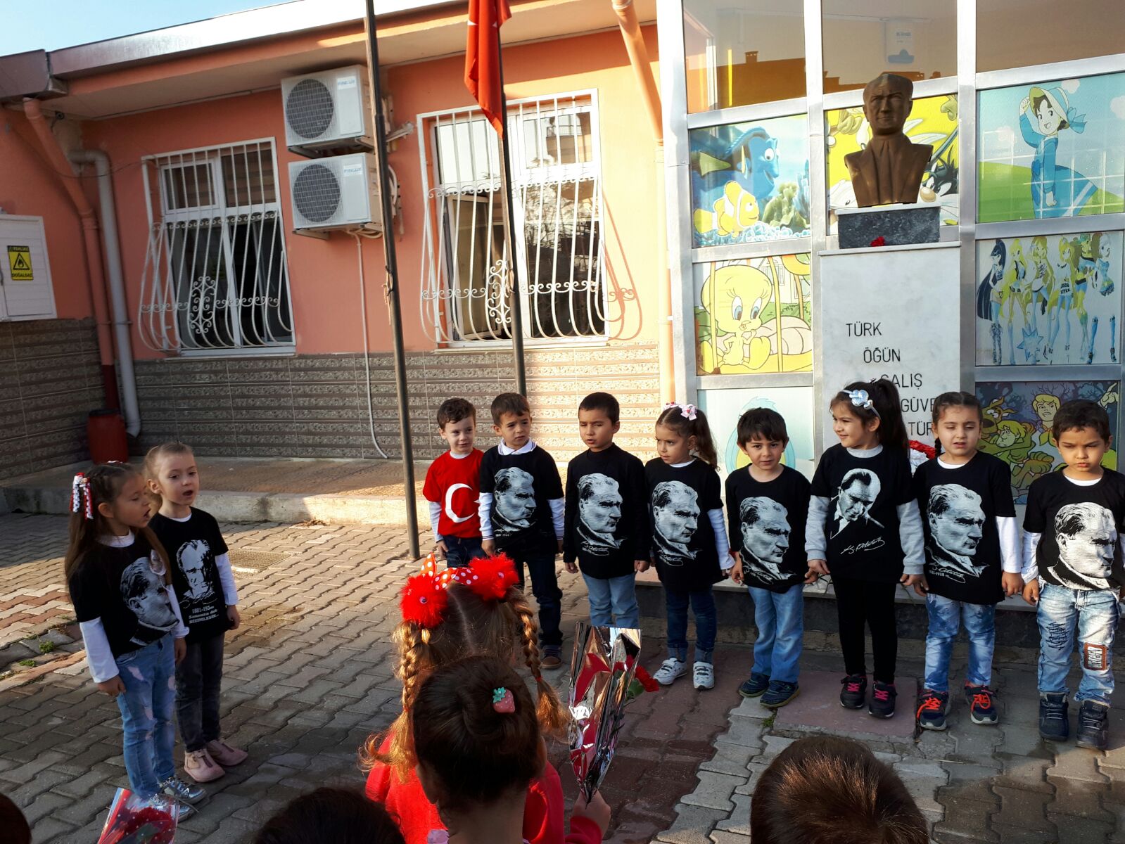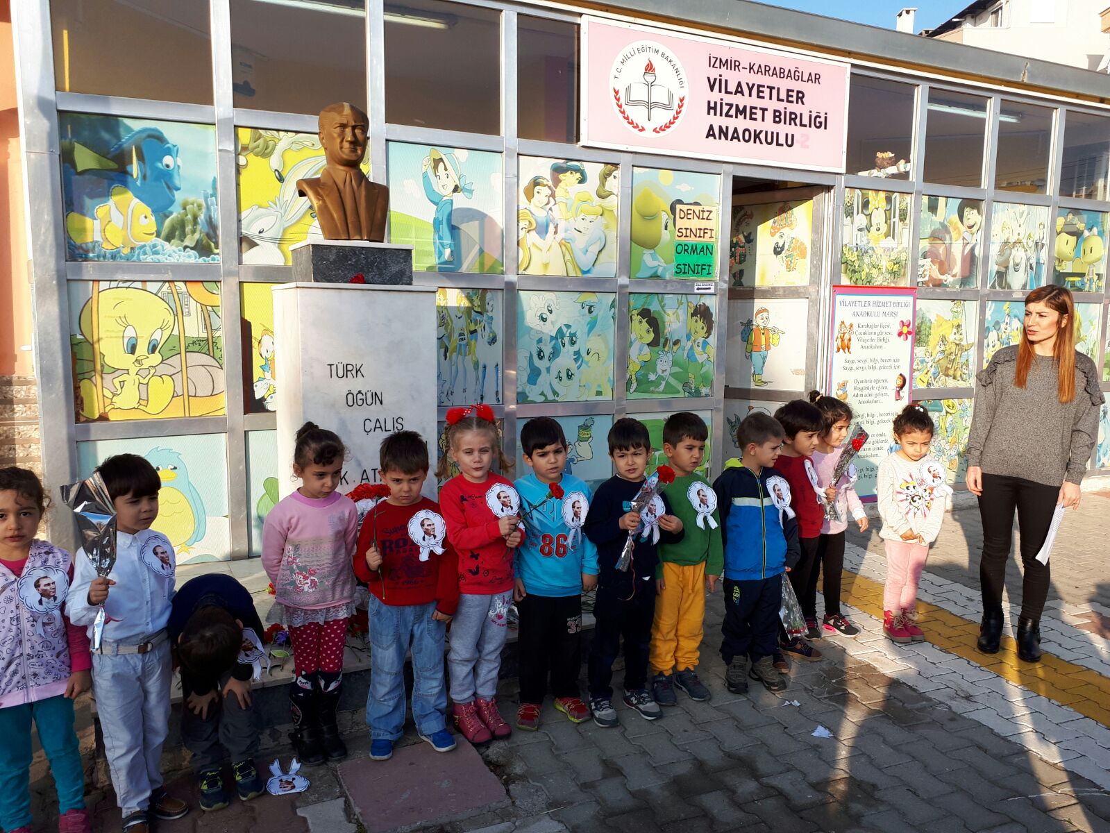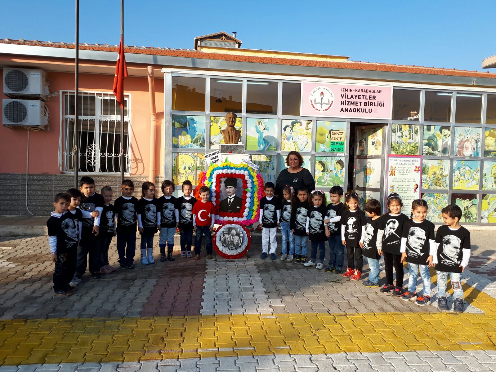 İzmir’in Karabağlar ilçesinde bulunan Vilayetler Hizmet Birliği Anaokulu öğrencileri ölümünün 79. Sene devriyesinde Türkiye Cumhuriyeti Kurucusu Mustafa Kemal Atatürk’ü kendi sunumlarıyla gerçekleştirdikleri törenle andı. Okula ait çok amaçlı spor salonunda gerçekleşen anma töreninde duygu dolu anlar yaşandı.