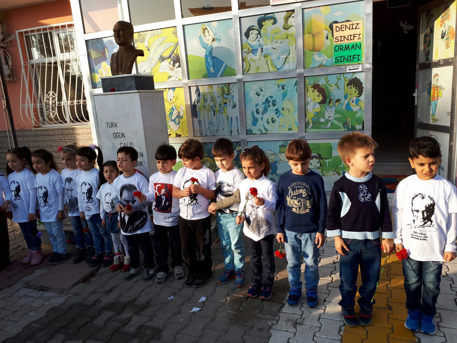 Vilayetler Hizmet Birliği Anaokulu öğrencilerine Ata sevgisi aşılayan okulun görevli öğretmenleri 29 Ekim Cumhuriyet Bayramı’nda da öğrencilerle güzel bir etkinliğe imza atmışlardı. 10 Kasım için özel program hazırlayan öğretmenler Deniz Sınıfı, Orman Sınıfı, Gökyüzü Sınıfı, Mevsimler Sınıfı ve Doğa Sınıfı öğrencilerinin sunumuyla duygu yüklü anma töreni gerçekleştirdi. Öğrenciler okudukları şiirlerden sonra okul bahçesinde bulunan Atatürk Büstü’ne çelenk bırakarak Ata’larını yaad etti.