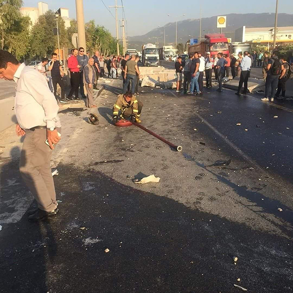 İhbar üzerine gelen itfaiye ekipleri yanan tırı söndürürken, sağlık ekipleri talihsiz şoförü ambulansla Ege Üniversitesi Hastanesine kaldırdı. Mesut A.'nın hayati tehlikesinin bulunmadığı öğrenilirken, trafiğe kapanan yol tırın kaldırılmasıyla açıldı.