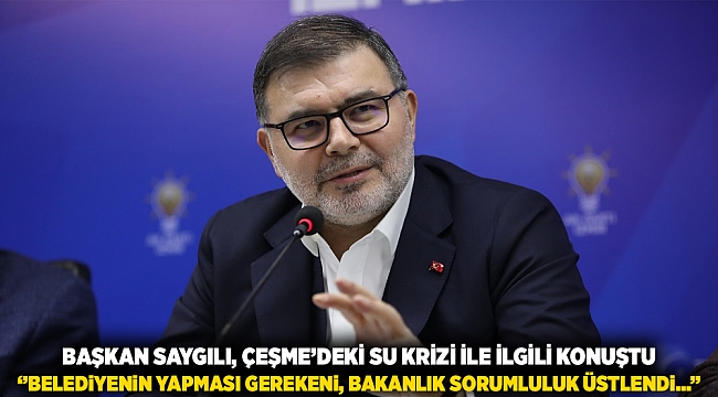AK Parti İzmir İl Başkanı Bilal Saygılı, Çeşme’deki su sorunu çözecek barajla ilgili, ‘’Aslında arıtma tesisleri ve iletim hatlarının belediyeler tarafından yapılması gerekirken, Çeşmeliler ve tatil için Çeşme’ye gelen vatandaşlarımız mağdur olmaması adına bakanlığımız sorumluluk üstlenmiş, yaklaşık 600 milyon TL ilave yatırımla bu üniteleri de bizzat üstlenerek tamamlamıştır. Bugün 1 milyar TL’yi aşan bir kamu yatırımı, kontrol testleri aşamasına gelmişken; İzmir’de başladıkları her işi yarım bırakan bir anlayışın, bu seviyeye ulaşmış bir projeye haksız ve mesnetsiz eleştiriler yöneltmesi kabul edilemez.’’ dedi. Başkan Saygılı, İzmir’e su için 80 yılda yapılan yatırımın fazlasının AK Parti iktidarları döneminde yapıldığını belirterek sayılarla açıklama yaptı.