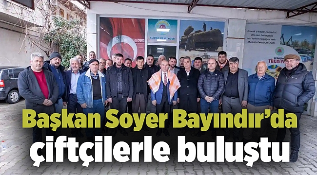 İzmir Büyükşehir Belediye Başkanı Tunç Soyer, Bayındır Ziraat Odası’nı ziyaret ederek Bayındırlı çiftçilerle buluştu. Bayındır Ziraat Odası Başkanı Mümtaz Almışlar ve oda yönetimi tarafından konuk edilen Başkan Tunç Soyer, çiftçilerle sohbet etti.