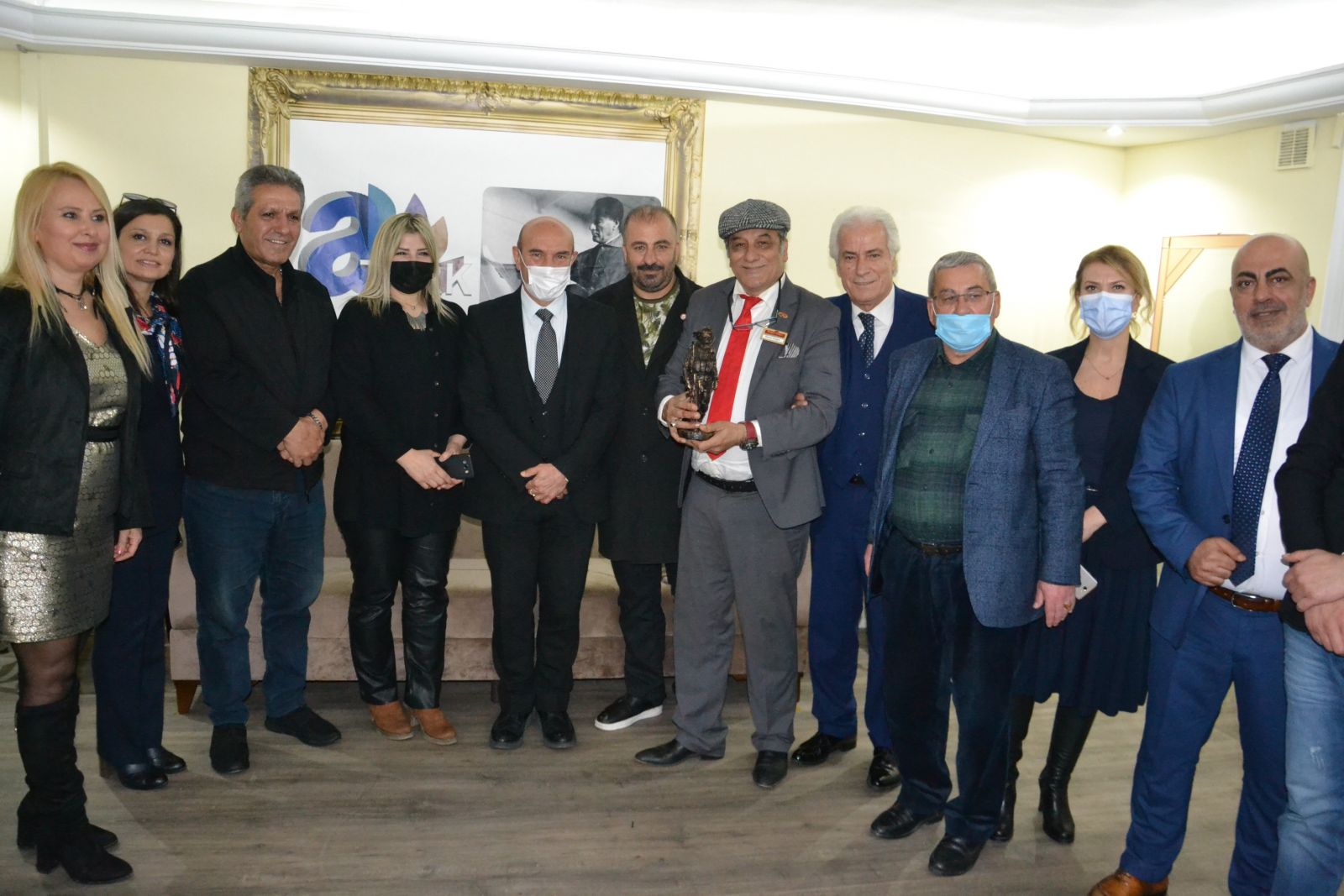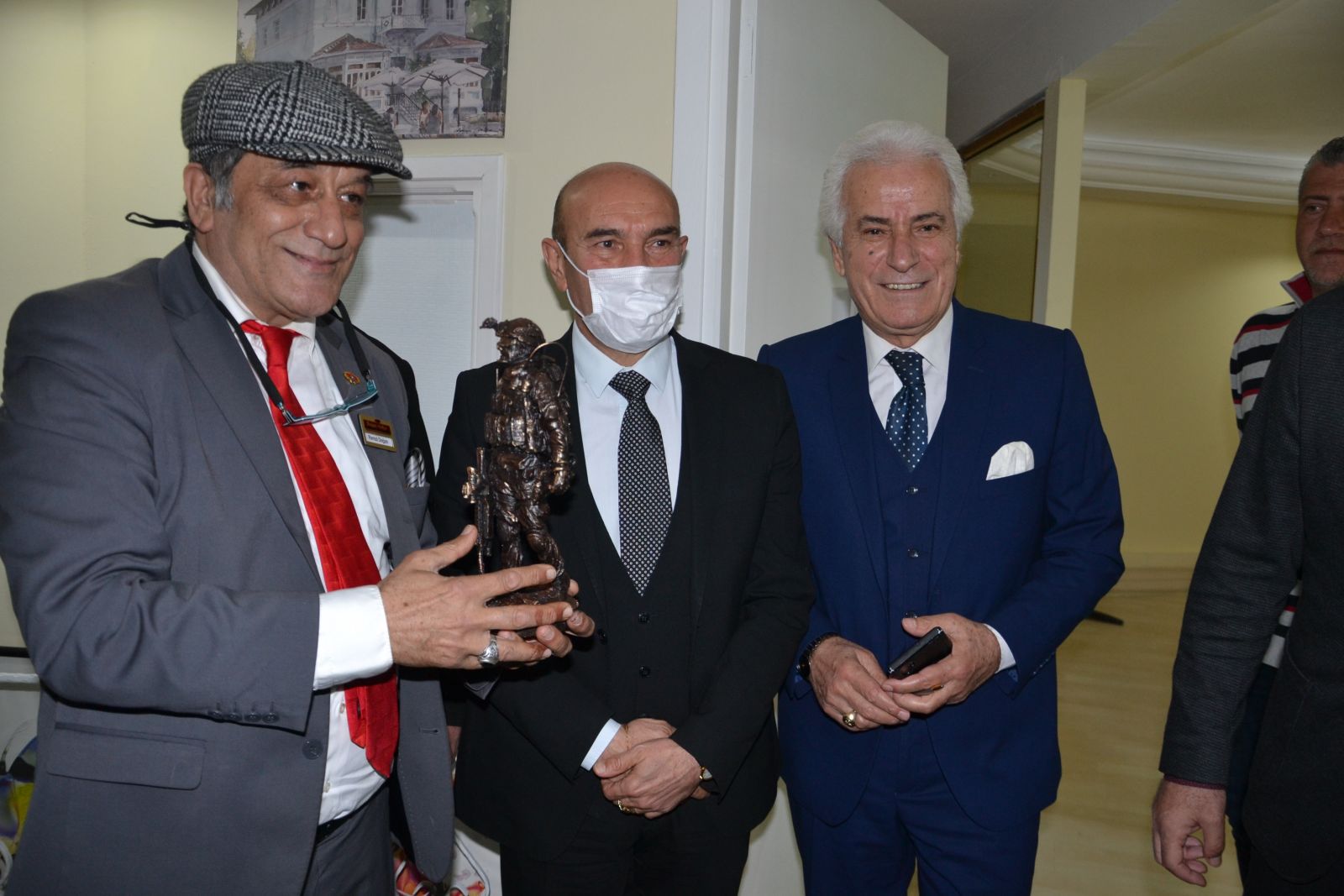 Başkan Soyer'de sunulan hediyenin çok kıymetli olduğunu ve çerçeveletip asacağını ifade ederek çok teşekkür etti. Diker'in yanı sıra İBYAD Yönetim Kurulu üyelerinden Remzi Doğan'da kendisini yaptığı Komando Heykeli'ni Başkan Soyer'e hediye etti.