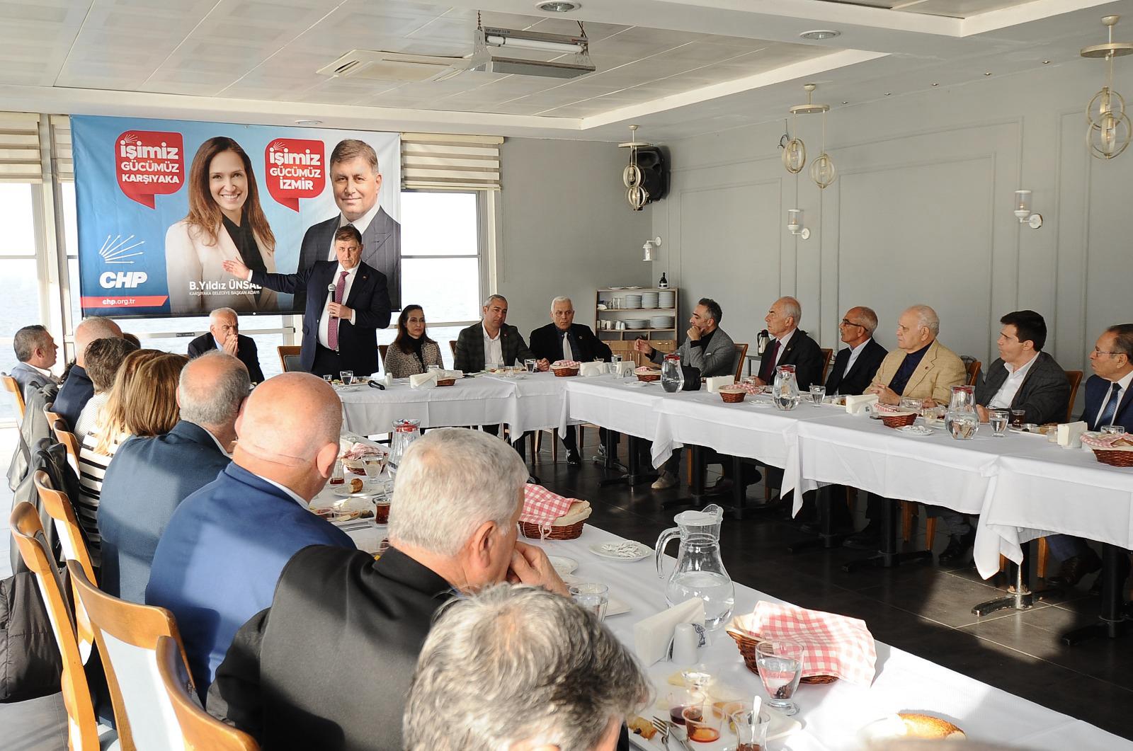 CHP'nin İzmir Büyükşehir Belediye Başkan Adayı Dr. Cemil Tugay, seçim çalışmaları kapsamında Karşıyaka'da muhtarlarla buluştu. Deniz Kent Restoran’da düzenlenen toplantıda muhtarların yanı sıra CHP Karşıyaka Belediye Başkan Adayı Yıldız İşçimler Ünsal ve CHP Karşıyaka İlçe Başkanı Levent Güçlü de yer aldı.